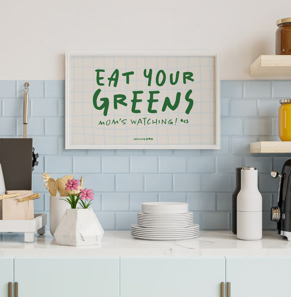 Because no matter how old they get, Mom’s food rules still apply! This poster is the perfect way to remind your big kids that veggies aren’t optional—especially when Mom has eyes everywhere. Hang it in the kitchen, dining room, or anywhere they need a friendly nudge to make healthier choices.