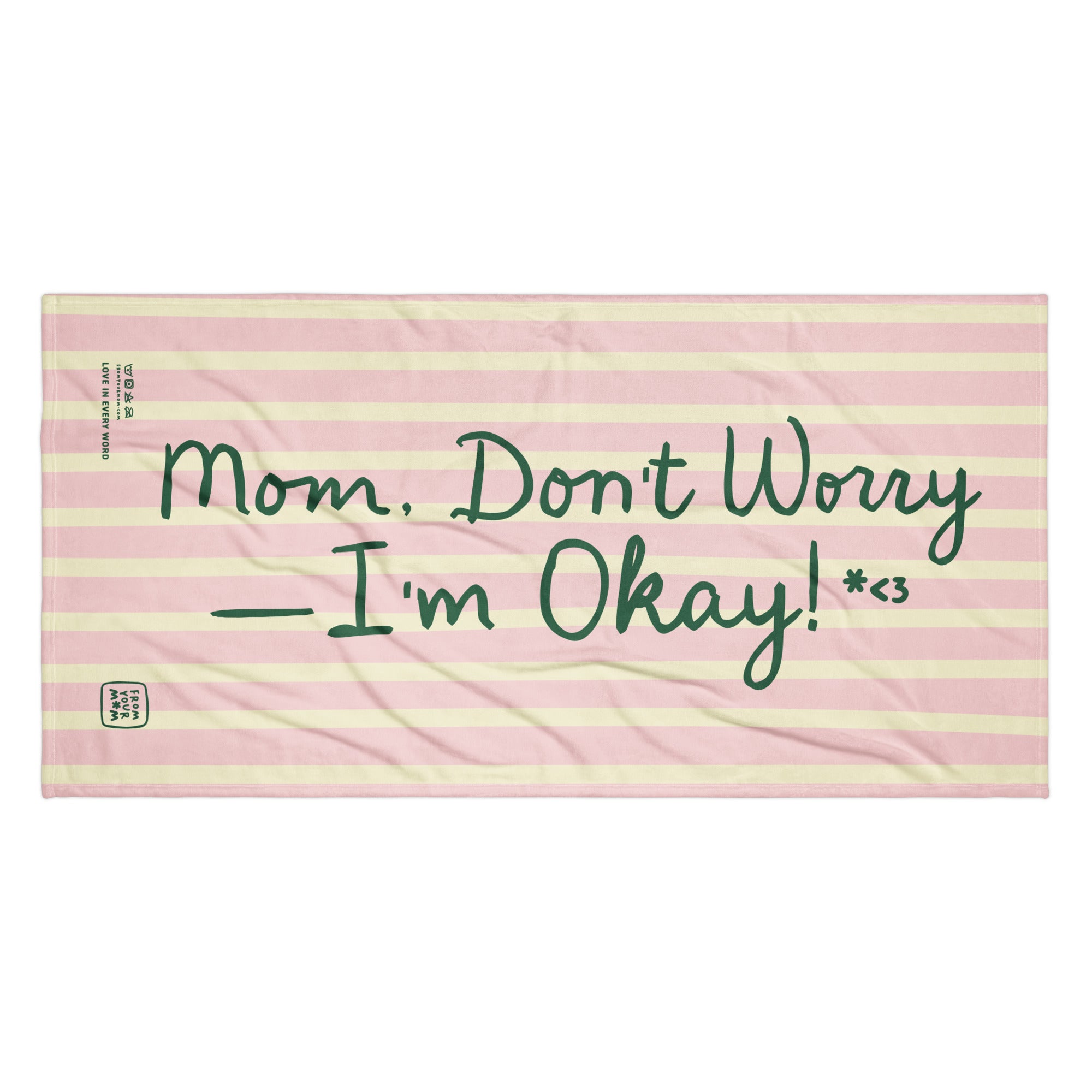 MOM, DON'T WORRY — I'M OKAY! beach towel 36"x72"