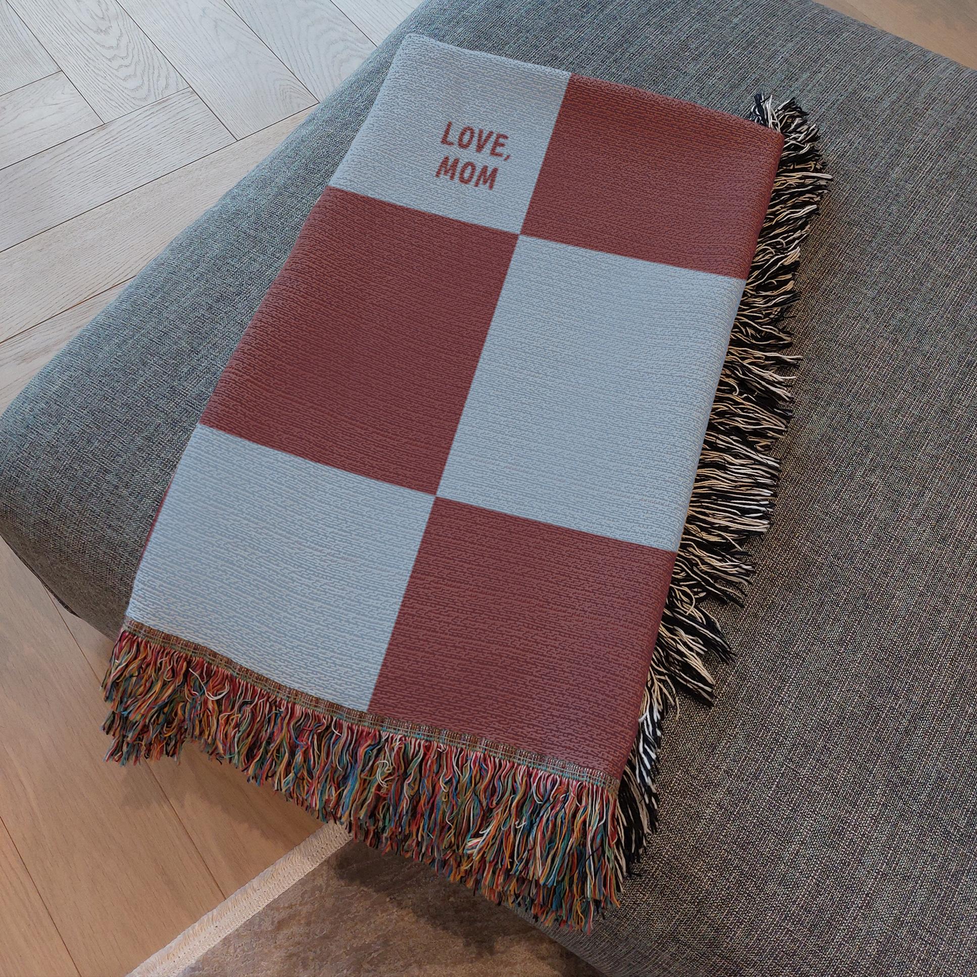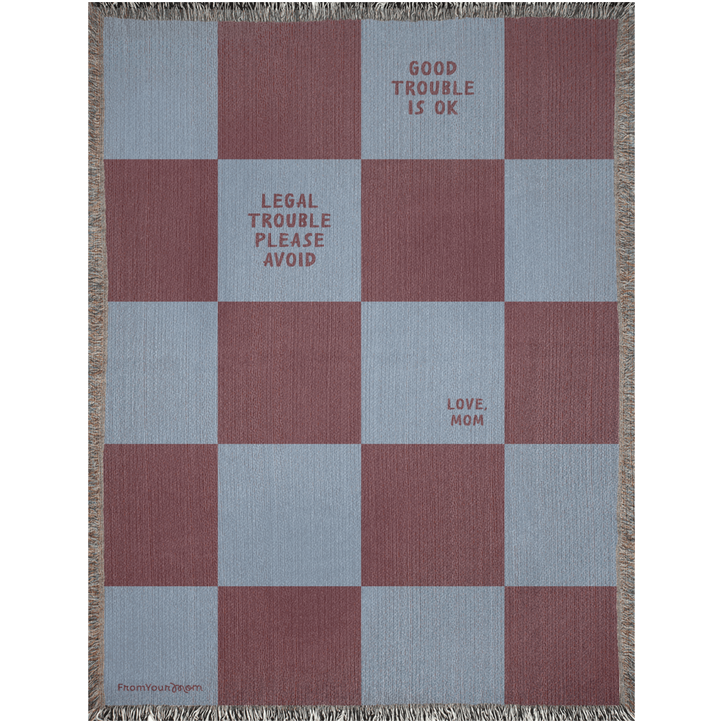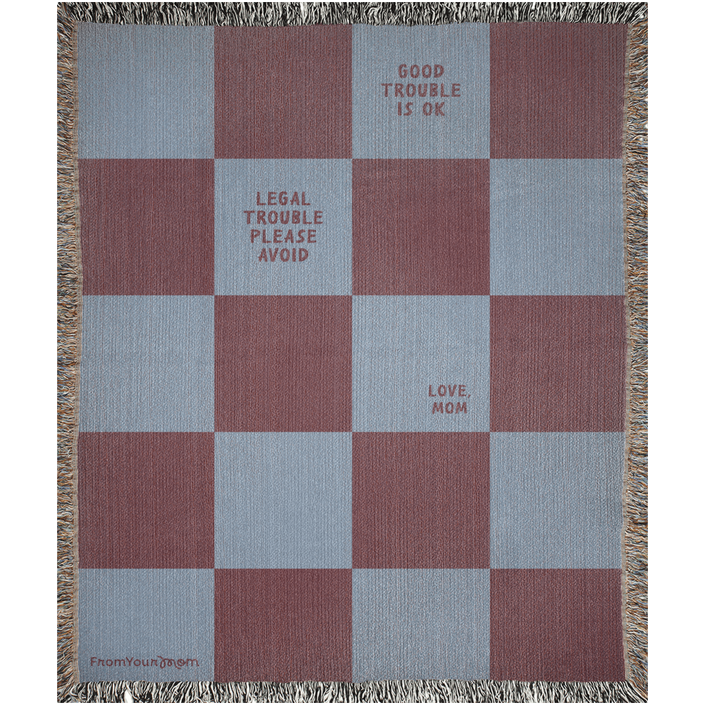 A cozy woven blanket featuring one of Mom’s most important life rules.